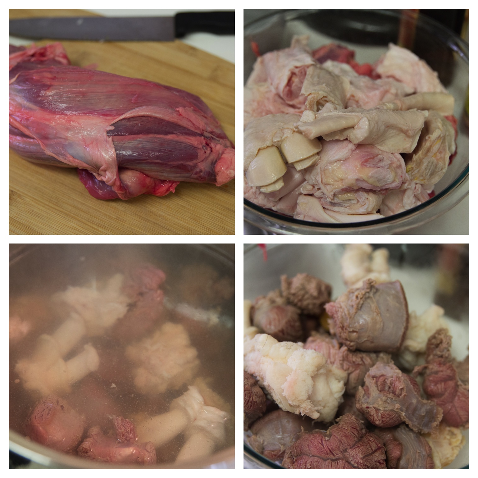 - 4 pounds of a combination of boneless beef shank or chuck and beef tendon, cut into 1-inch cubes (I used 2 of each)