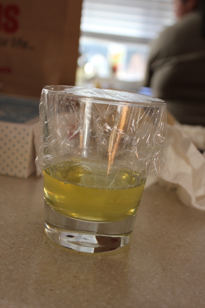 Instead of aging the egg whites as I normally would, I separated the egg whites into a glass covered with plastic wrap and let it sit at room temperature for two hours.