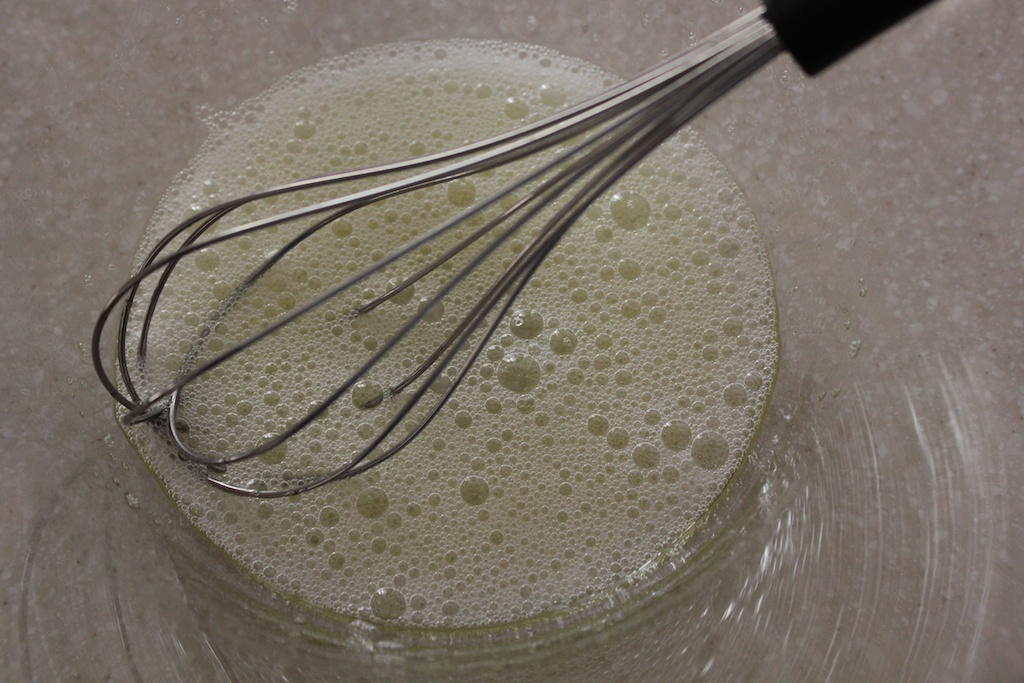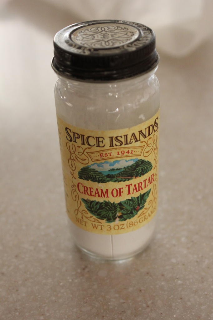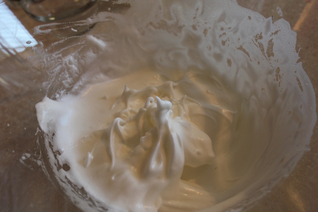 To make things a bit easier, I used my secret ingredient, cream of tartar. I gently beat the egg whites with a pinch of Cream of Tartar in a circular motion so the proteins in the egg white have a chance to unravel.
