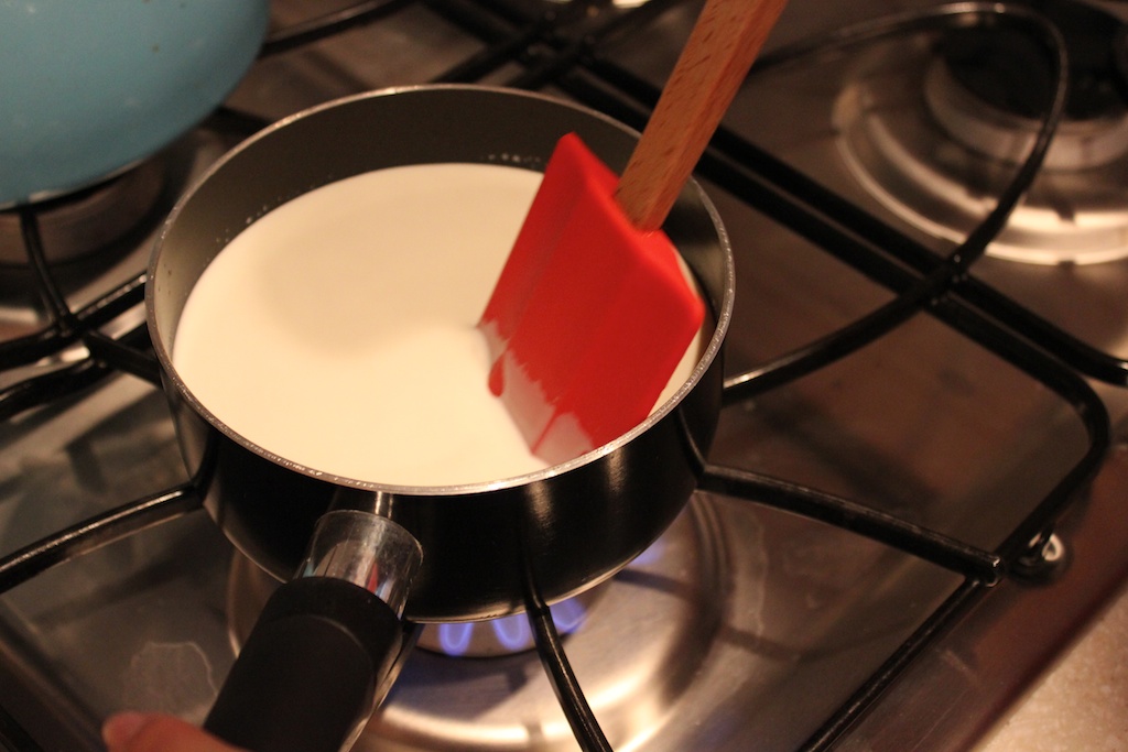 The actual mechanics is really simple. Start off by heating the heavy cream.