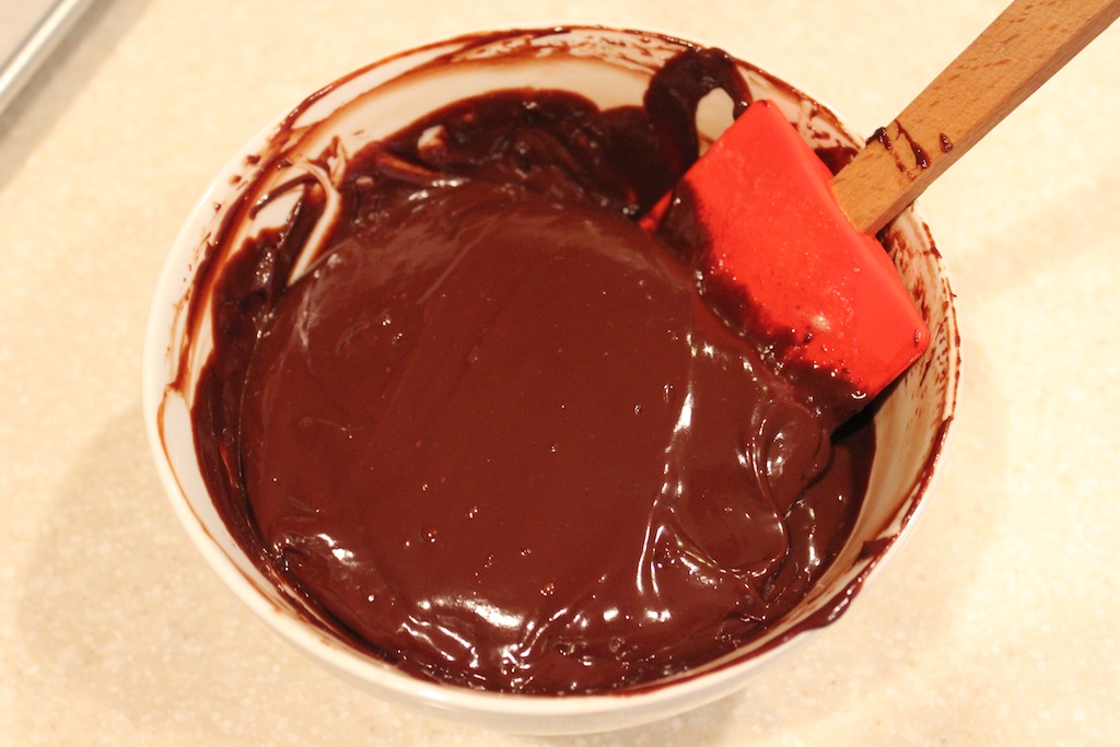 Add the cream to the chocolate chips and let it sit. After a few minutes stir it gently and you’re good to go!