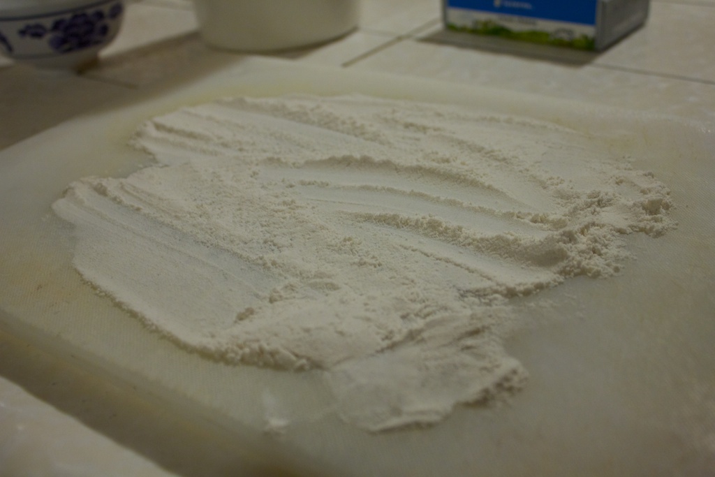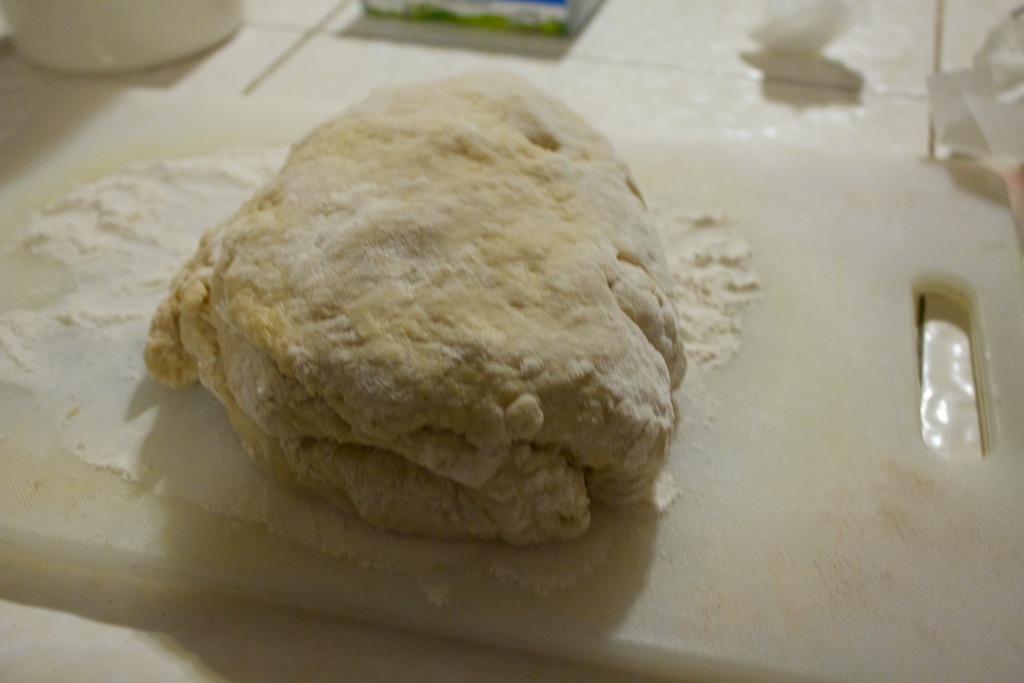 You want a thoroughly floured board. Otherwise, you’ll end up with a sticky mass stuck onto your hands and the board.