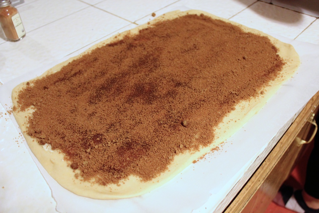 While I was doing this, my trusted helper, Shun, was mixing together cinnamon and brown sugar.