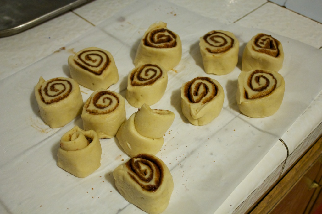 After cutting these, let them rise until doubled again. I like to use a toasty oven and cover it with some saran wrap.