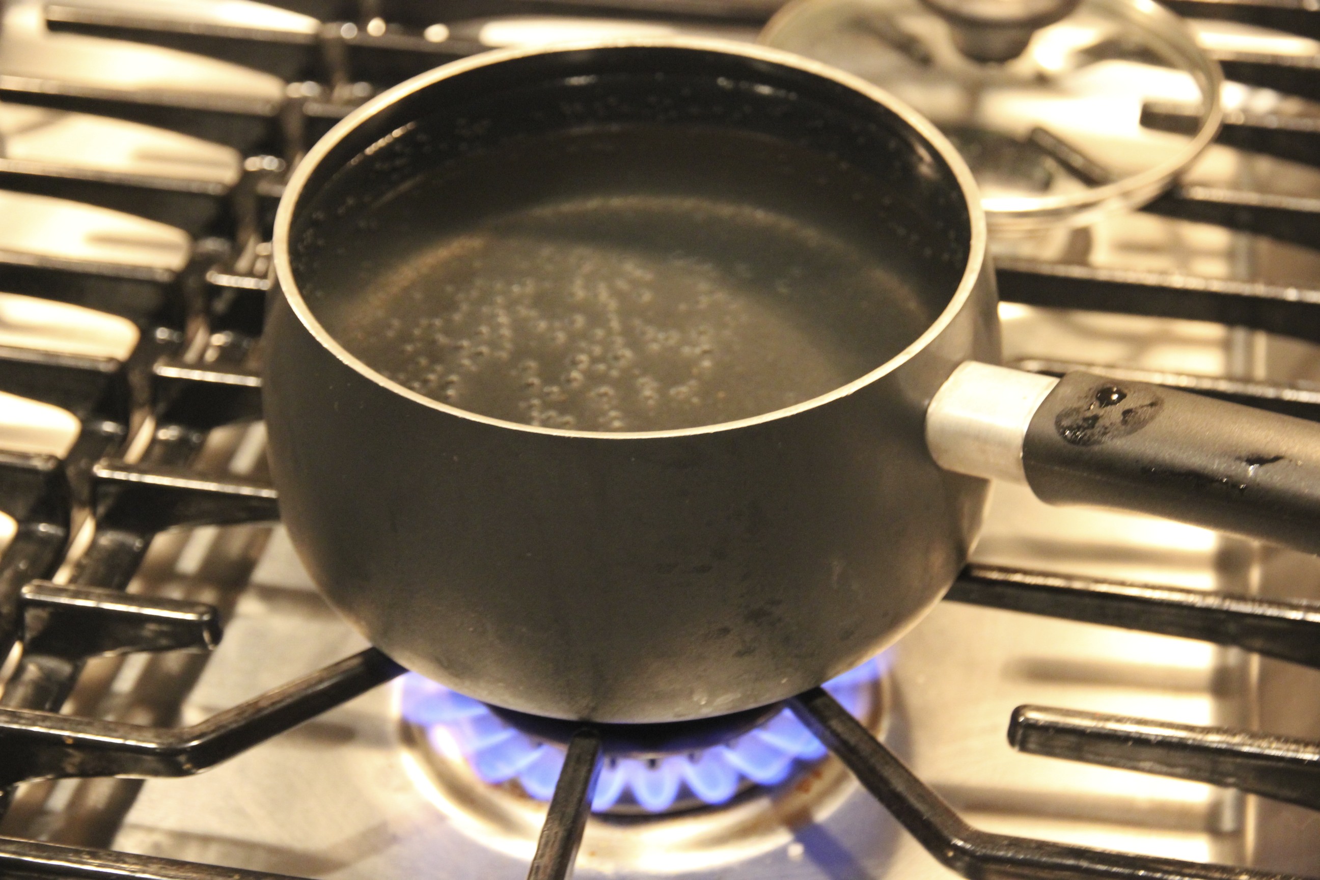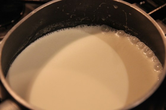 Once the heavy cream forms small bubbles remove the sauce pan from the heat.