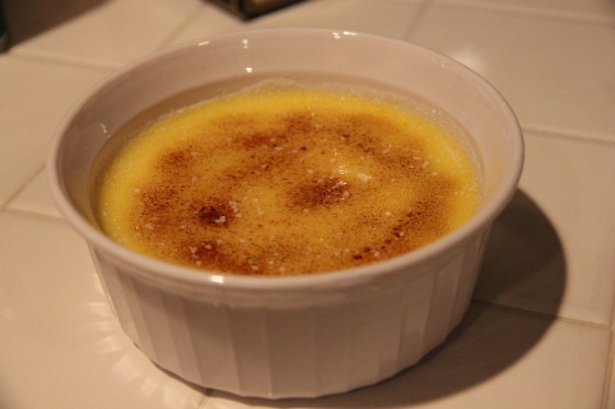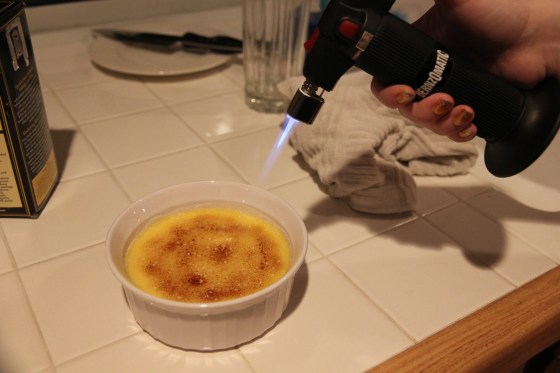 For those of you new to this dessert, it can be separated into two different components, a rich custard base, or the “creme” and a crunchy caramelized sugar top, or the “brûlée”. The brûlée has been marketed to be produced with a torch. Now that I have most of my readers equally confused, I’ll start making my point.