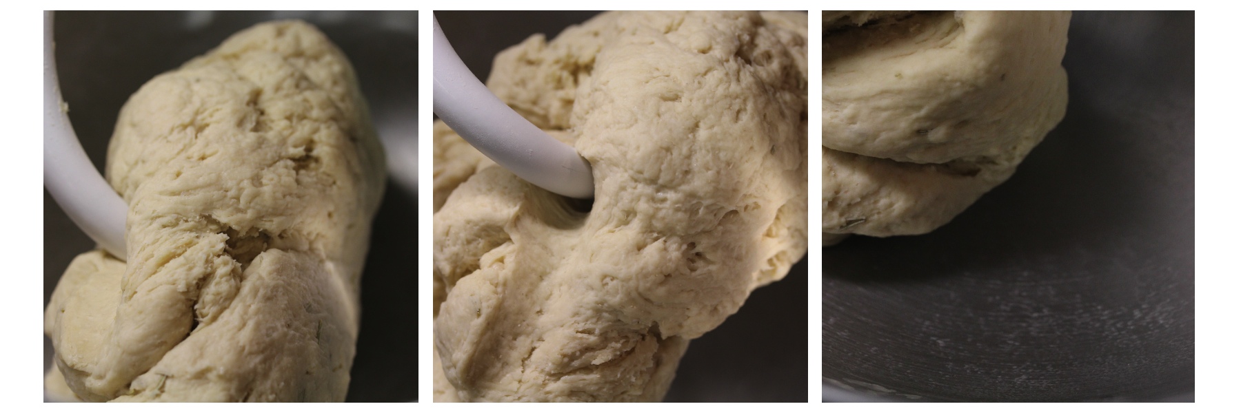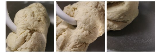 - Turn on the stand mixer (stir or 2 on a Kitchen Aid) and add in the water. When the water is worked into the dough, add additional water, 1 Tbsp at a time, waiting each time until the water is worked in. When the dough barely comes together, add 2 more Tbsp of water and knead the dough until it is smooth.