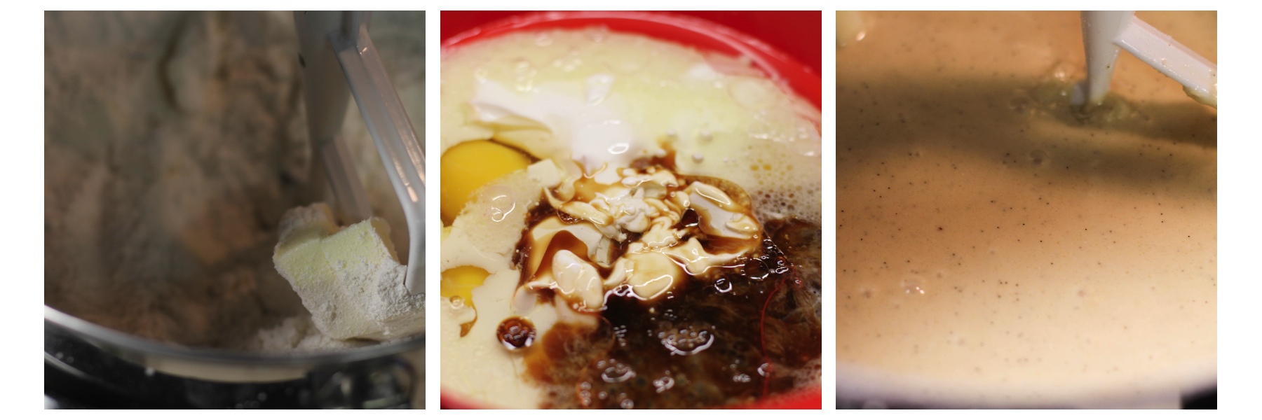 - Add butter and mix on medium-low speed for three minutes. Because there is so little butter, you’ll end up with a very fine crumb texture.