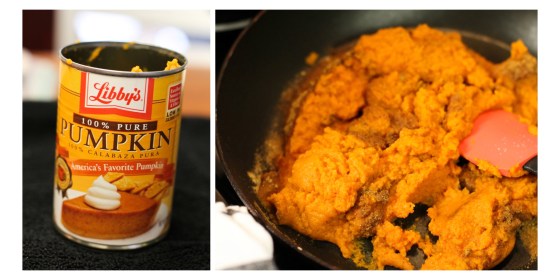 A trick that I’ve picked up is cooking the pumpkin with the spices slightly. I’ve never tasted the “canned” flavor in my pumpkin, but people claim that it makes the final product taste a lot better. Since then, I’ve used the same method to prepare my pumpkin pie and pretty much anything that uses canned pumpkin.